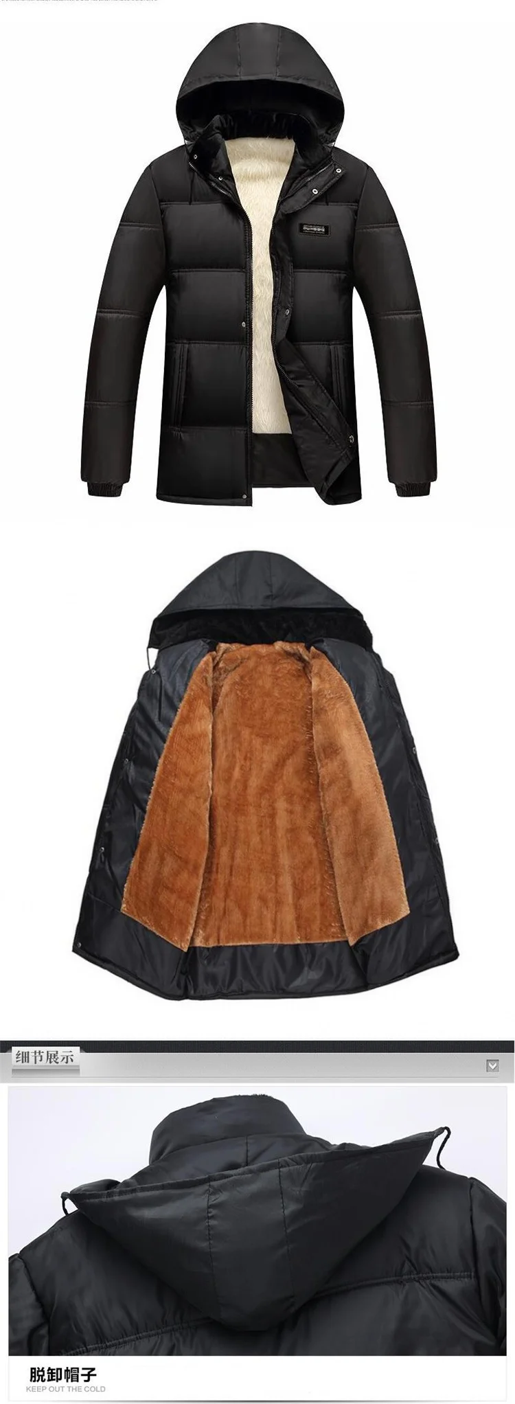 New Winter Coat Men Fashion Hooded Thick Warm Wool Liner Windbreaker Jacket Men Mid-long Outerwear Parkas Coat